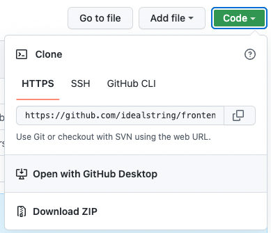 이후 작업할 로컬 저장소와 원격 저장소의 레포지토리를 연결시킨다. 저장소 주소는 github에서 볼 수 있다.