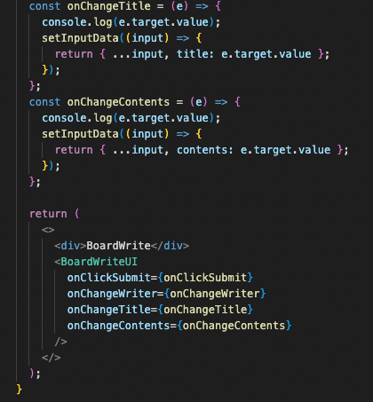 한 파일에서 리턴을 새로 파일을 만든 후 기존 파일을 container로 명명하고 return에 새로 만든 presenter파일을 import했다. 이로 인해 80줄이 50줄, 30줄로 나뉘어 코드 보기가 훨씬 더 간편해졌다. 페이지가 더 복잡하다면 더욱 이득인 상태다.