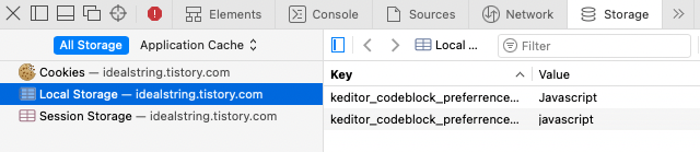 세션스토리지와 반대라고 받아들이면 쉽다. 로컬스토리지는 브라우저를 닫아도 해당 데이터가 살아있다. 데이터는 주소 단위로 저장된다. idealstring.tistory.com에서 로컬스토리지에 저장했다면 다른 사이트에선 해당 로컬 스토리지가 없다. 브라우저마다 다르지만 저장용량도 최대 5MB까지 제공한다. 게다가 서버에 불필요한 데이터를 저장하지 않는다. 다만, HTML5를 지원하지 않는 브라우저라면 이 공간은 없다고 봐야한다. 세션스토리지와 마찬가지로 문자열 데이터만 저장할 수 있다.