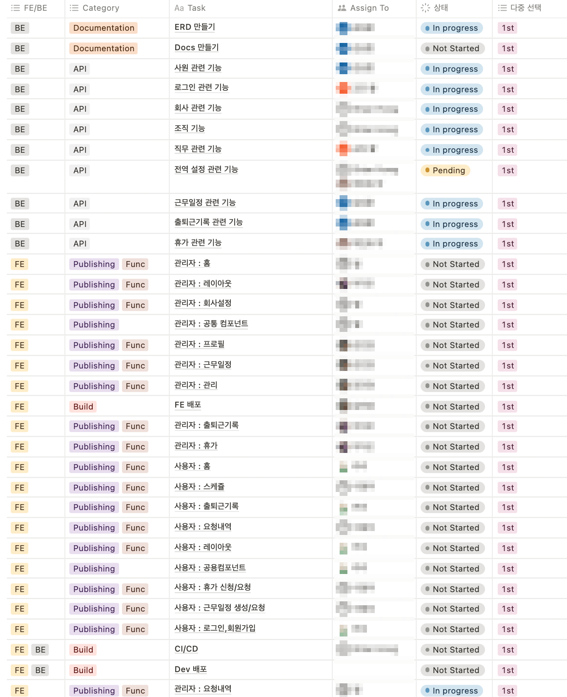 이렇게 진행하니 서로의 진행 체크는 되는데, 전체 일정중 현재 몇퍼센트가 진행되는지는 알기 어려웠다. 스프린트를 작성했지만, 얼마나 프로젝트가 진행된 건지 알기가 어렵다. 그래서 이번주엔 아마 이 스프린트를 더 자세하기 짜는 것을 건의할 예정이다. Publising과 Func을 분리하고, Func에서도 태스크를 더 분리해야 진행사항이 더 잘 보일 듯해서다. 기획자가 없이 진행한 프로젝트인 만큼 특정 개인에게 일이 몰린 게 있을 수도 있다. 이걸 생각하게 된 것은,,, 내가 맡은 부분이 생각보다 할일이 적어서다. 물론, 홈, 요청내역 등 데이터를 보여주는 부분이라 추후에 바빠질 순 있지만...