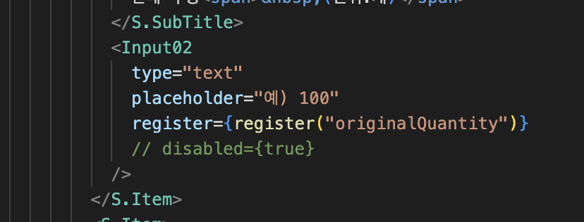 코드가 길어진다면 같은 기능을 갖는 컴포넌트는 따로 분리하는 것도 좋다. 아래 코드는 값이 바뀔 때마다 바뀐 값만 저장하는 객체다. container-presenter 패턴으로 작업했기에 아래 같은 코드는 쓸떼 없이 코드가 늘어나게 할 뿐이었다. 따라서 별로 컴포넌트로 빼 코드 가독성을 높였다.